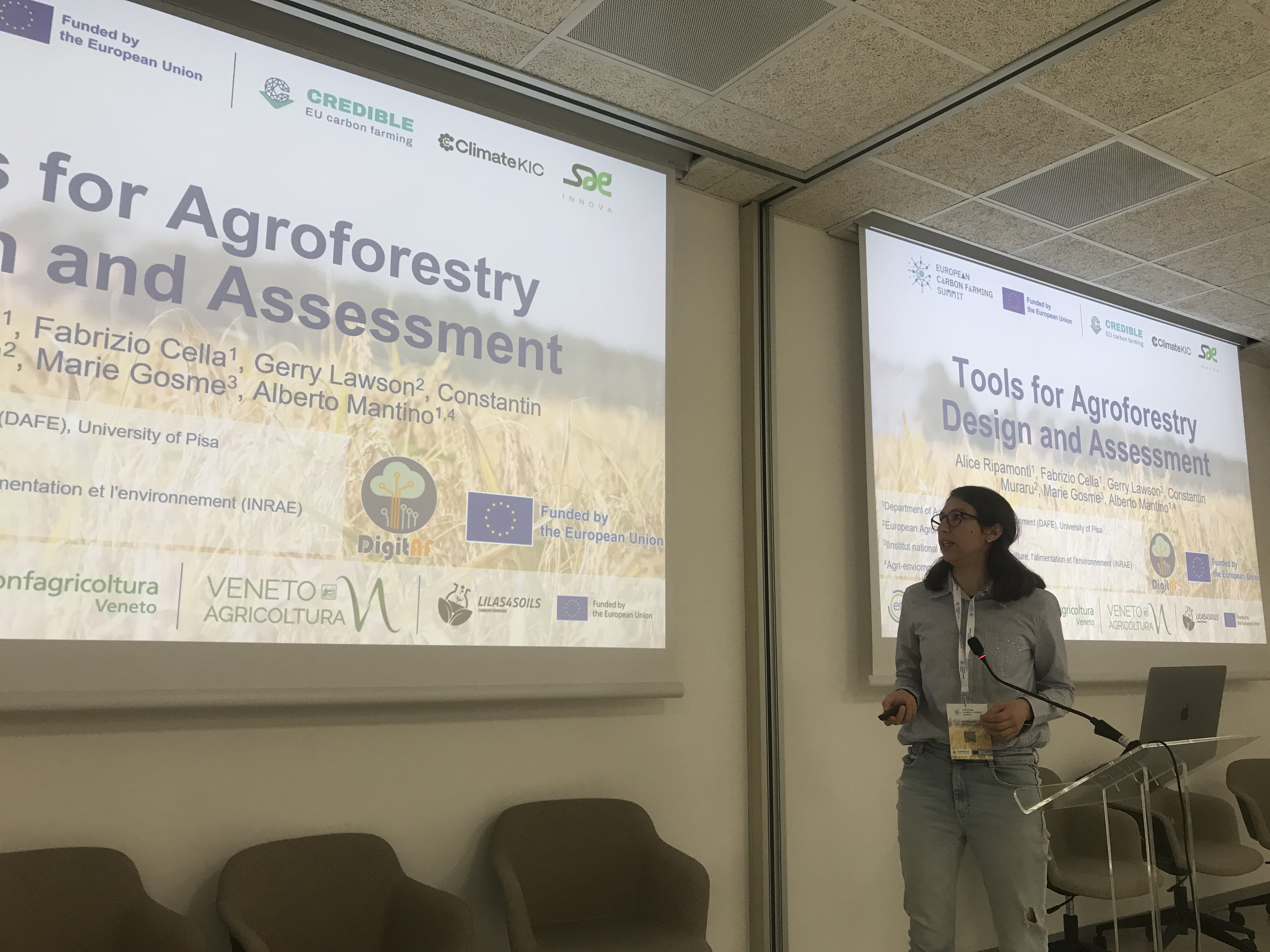 During the 3rd European Carbon Farming Summit in Padua, Italy (17-19 March 2026), DigitAF partners organised two sessions. First, a workshop aiming at unlocking synergies among agroforestry actors through participatory approaches, organised by Alice Ripamonti, Fabrizio Cella and Alberto Mantino (UNIPI). Second, a parallel session on opportunities for cooperation on agroforestry carbon farming between European research projects, and extension to projects operating in Africa, organised by Gerry Lawson (EURAF), during which Marie Gosme (INRAE) presented DigitAF. Romane Dalla Vera (ERDYN) was also present to conduct interviews of participants. The summit was a good opportunity to widen the audience for…